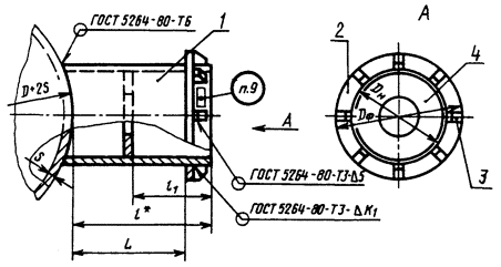 5. Конструкция и размеры фланца (поз. 2) должны соответствовать указанным на черт. 3 и в табл. 4.