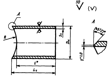 Примечание. Размер Dp необходимо корректировать в зависимости от фактического внутреннего диаметра оболочки для обеспечения допустимого зазора в сварном соединении в соответствии с ГОСТ 5264.