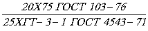 То же полосовой, толщиной 20 мм, шириной 75 мм по ГОСТ 103-76, марки 25ХГТ, группы качества поверхности 3, вариант механических свойств 1, без термической обработки: