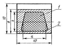 2. Замер параметров (а, b) площади, занимаемой хрупкой составляющей, производят линейкой с точностью до 0,5 мм; при этом погрешность измерения не должна превышать 5 %. Зная параметры а и b, процент составляющей определяют по таблице.