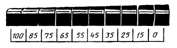 В тех случаях, когда не требуется высокая прочность, процент вязкой составляющей допускается определять с помощью визуального сопоставления вида исследуемого излома (по хрупкой составляющей) со шкалой (см. черт. 2).