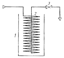 1 - сосуд для охлаждающей смеси; 2 - змеевик; 3 - игольчатый вентиль