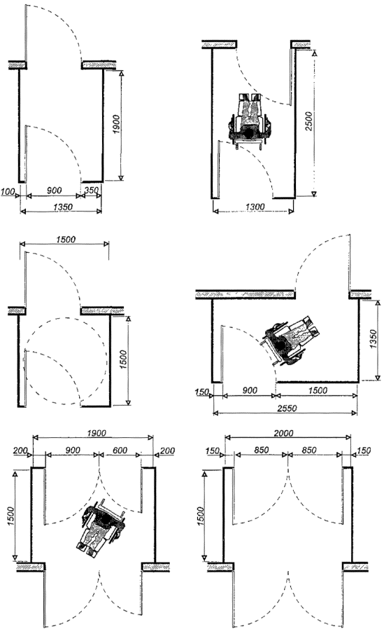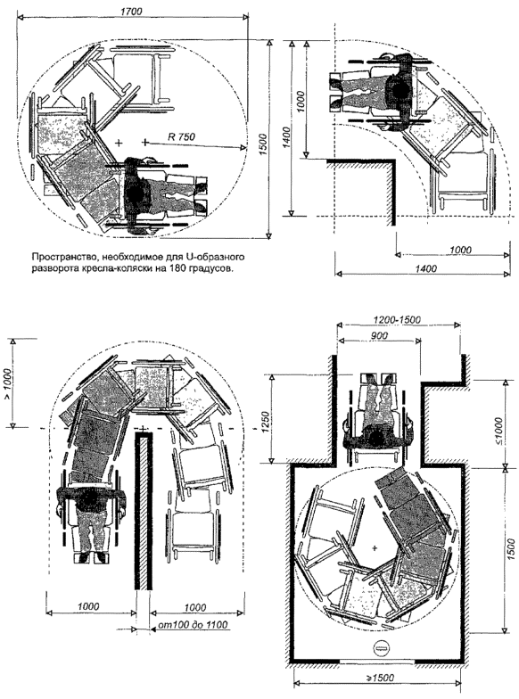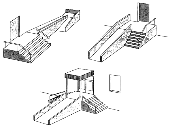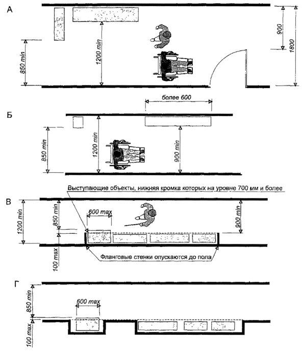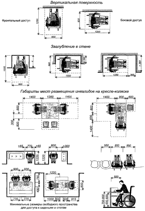 Представленные в частях 2 и 3 графические схемы рекомендуется использовать при любом варианте организации доступности зданий и сооружений для маломобильных групп населения.