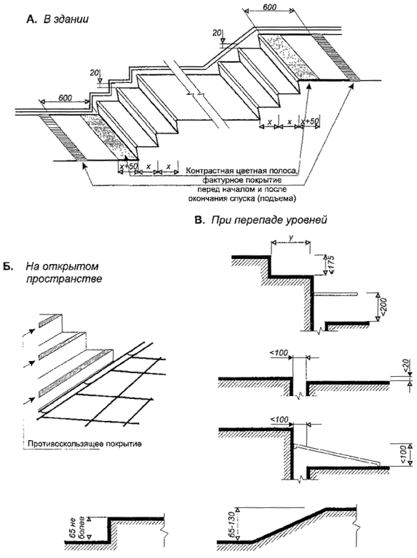 ВСН 62-91*/Госкомархитектуры. Проектирование среды жизнедеятельности с учетом потребности инвалидов и маломобильных групп населения/Госстрой России. - М.: ГУП ЦПП, 1994 (ЦНИИЭП им. Б.С.Мезенцева, ЦНИИЭП жилища, ЦНИИЭП учебных зданий и ЦНИИЭП курортно-туристических зданий и комплексов Госкомархитектуры);