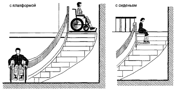 Подъемное устройство (платформа) - стационарная грузоподъемная машина периодического действия для подъема и спуска пользователей, размещающихся на платформе. Платформы с вертикальным перемещением - под углом не более 15°, платформы с наклонным перемещением - под углом не более 75°.