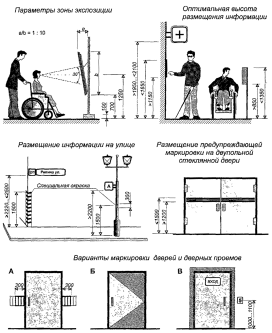 СП 35-103-2001 «Общественные здания и сооружения, доступные маломобильным посетителям»;