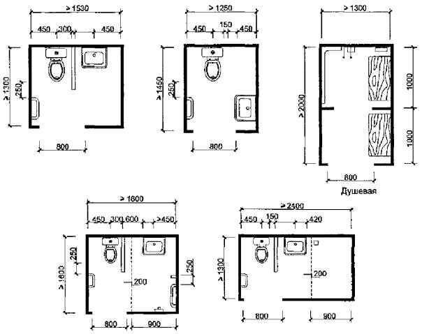 Планировка санитарно-технических помещений