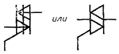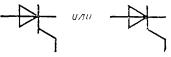 Примечание. Допускается обозначение тиристора с управлением по аноду изображать в виде продолжения соответствующей стороны треугольника.