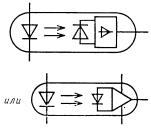 1. Допускается изображать оптоэлектронные приборы разнесенным способом. При этом знак оптического взаимодействия должен быть заменен знаками оптического излучения и поглощения по ГОСТ 2.721-74,