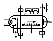 17. Лампа обратной волны (настраиваемый напряжением магнетрон) с постоянным магнитом, с замкнутой замедляющей системой, соединение с волноводным выходом через отверстие связи |