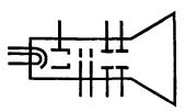2.25. Пушка электронная. Примечание. Допускается применять при упрощенном способе построения обозначений электронных ламп сверхвысокой частоты |
