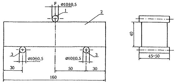 Образец устанавливают на опорные элементы прибора таким образом, чтобы его грани, горизонтальные при изготовлении, находились в вертикальном положении, а поверхность с маркировкой была обращена к испытателю. Образцы испытывают в соответствии с инструкцией к прибору.