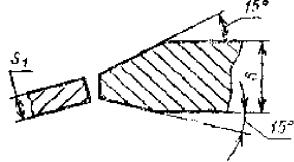 При разнице в толщине свариваемых деталей свыше значений, указанных в табл. 21 на детали, имеющей большую толщину S1, должен быть сделан скос с одной или двух сторон до толщины тонкой детали под углом 15°, как указано на черт. 1 и 2.