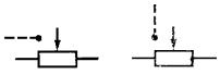 Примечание к пп. 4-7. Если необходимо уточнить характер регулирования, то следует применять обозначения регулирования по ГОСТ 2.71-74; например, резистор переменный: |