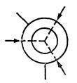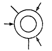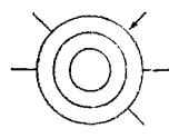 Примечания. 1. На короткозамкнутом участке потенциометра сопротивление равно нулю. 2. Кольцевой сектор, соответствующий короткозамкнутому участку, допускается не зачернять 3. Потенциометр функциональный кольцевой замкнутый многообмоточный, например, двухобмоточный с двумя отводами от каждой обмотки, изображенный: |