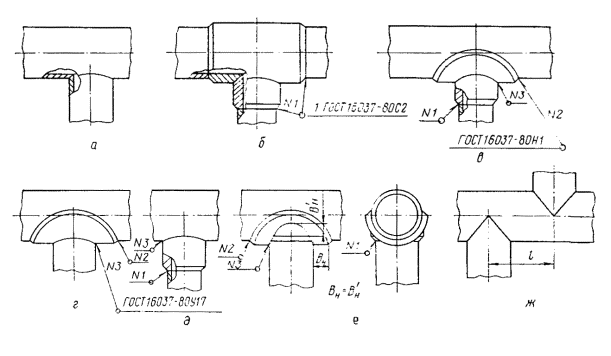 Рпр, Рраб, Ру - соответственно пробное, рабочее, условное давление в трубопроводе, МПа (кгс/см2); tдоп, tраб - соответственно допускаемая, рабочая температура среды, °С; Dy, dy - условный проход, мм; Dн, dн - наружный диаметр.