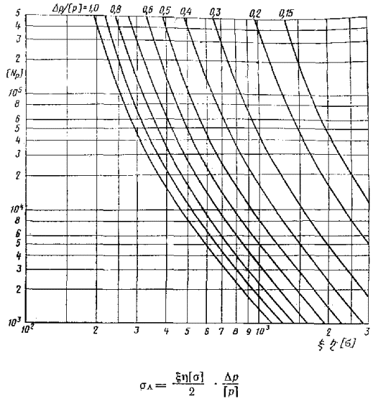 для всех элементов сосуда. Допускаемое число циклов нагружения давлением [Np] определяют по черт. 1-3.