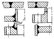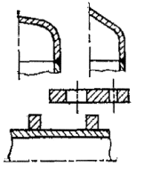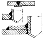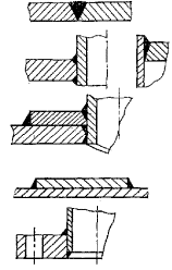 Односторонние сварные швы без подкладного листа с непроваром в корне шва. Сварные швы штуцеров с конструктивным зазором. Сварные швы подкладных листов. Сварные швы плоских приварных фланцев с конструктивным зазором. Сварные швы штуцеров с укрепляющим кольцом и конструктивным зазором. |