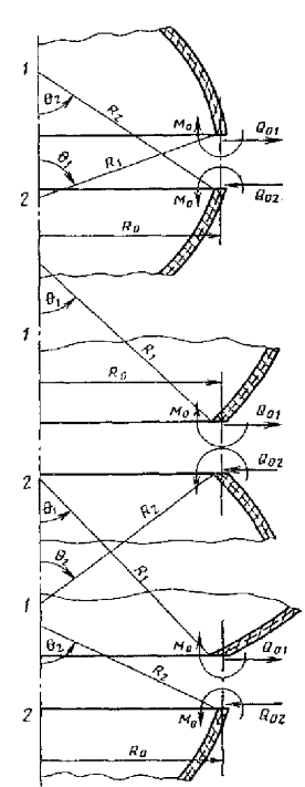Средние радиусы сопрягаемых оболочек, мм (см) |