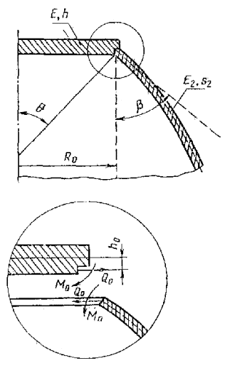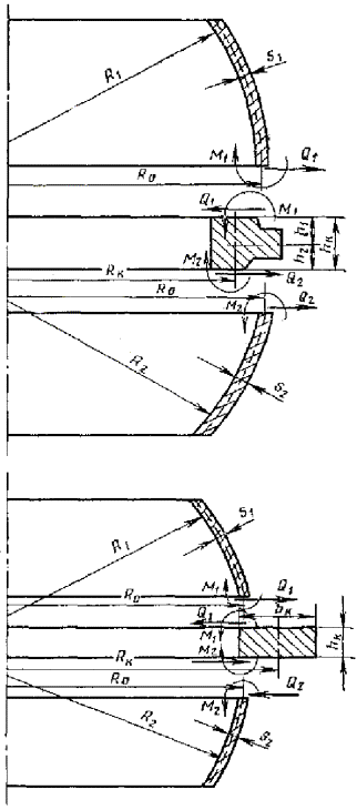 Соединение оболочек разных толщин. Плоское днище или крышка без отверстий (отверстия для болтов не учитываются), центральная зона. |
