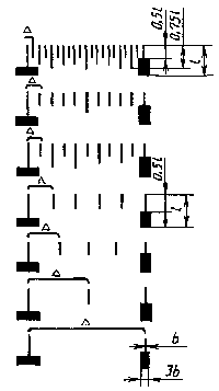 0,6 - 0,4 - 0,6; 1 - 0,6 - 1; 1,5 - 1 - 1,5; 2,5 - 1,5 - 2,5; 4 - 2,5 - 4.