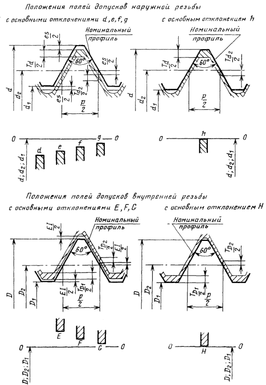 1.7. Поле допуска диаметра резьбы образуется сочетанием допуска и основного отклонения. Поле допуска резьбы образуется сочетанием поля допуска среднего диаметра с полем допуска диаметра выступов (диаметров d или D1).