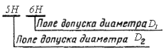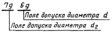 2.2. Обозначение поля допуска резьбы состоит, из обозначения поля допуска среднего диаметра, помещаемого на первом месте, и обозначения поля допуска диаметра выступов. Например: