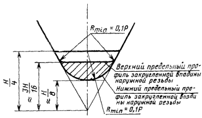Наименьший радиус впадины наружной резьбы |