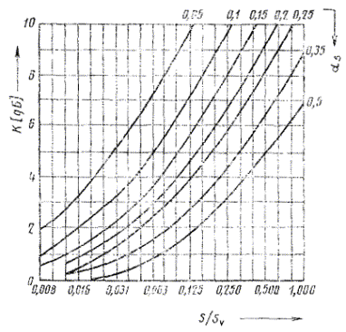 S - площадь измерительной поверхности м2, Sv - площадь ограничивающих поверхностей помещения м2, as - средний коэффициент звукопоглощения; К - постоянная согласно п. 3.4.