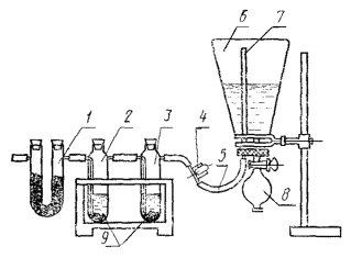 Примечание. Допускается отбирать пробы ацетилена в латексные камеры для спортивных мячей или кислородные подушки, предварительно промыв их 3-4 раза анализируемым газом. Время пребывания пробы газа в камере и подушке не должно превышать 30 мин.
