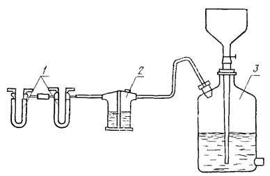 3.1.2. Перед определением содержания примесей первая порция ацетилена должна быть выпущена в атмосферу, для чего необходимо на 2-3 с полностью открыть вентиль для анализа на трубопроводе или вентиль на баллоне. Соединительные трубки от места отбора проб до установки для анализа должны быть продуты не менее чем десятикратным объемом анализируемого ацетилена. Ацетилен в установку подается под давлением не выше 1000 мм вод. ст.