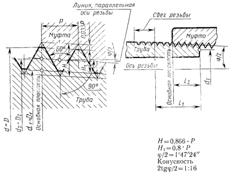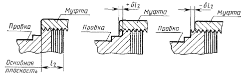 1. При свинчивании без натяга трубы и муфты с номинальными размерами резьбы основная плоскость резьбы трубы совпадает с торцом муфты.