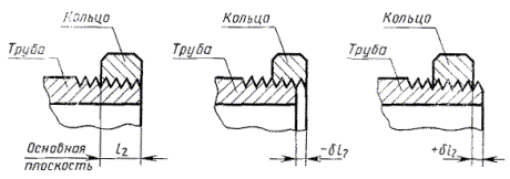 5. Допускается уменьшать размер l2 (расстояние от основной плоскости до торца трубы), при этом должно быть соблюдено требование п. 4 настоящего стандарта о разности размеров l1-l2.