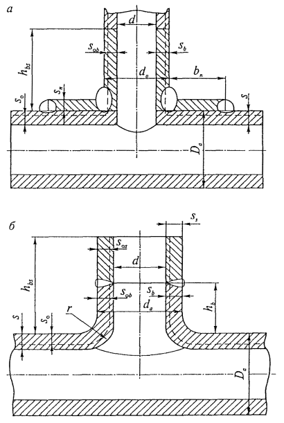 r - радиус скругления горловины штампованного (штампосварного) тройника, мм;
