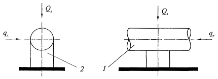 qтр - интенсивность сил трения, действующих вдоль оси трубы при бесканальной прокладке, Н/м;