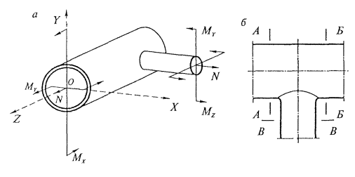 РД предусматривает определение толщины стенки отводов, тройников и врезок из условия обеспечения их несущей способности от действия внутреннего давления, а также оценку статической и циклической прочности трубопровода.