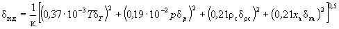 где dТ, dр, drс, dха и dху - погрешности измеряемых параметров, соответственно, температуры, давления, плотности природного газа при стандартных условиях, содержания азота и диоксида углерода в нем.