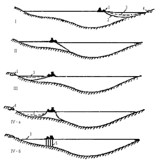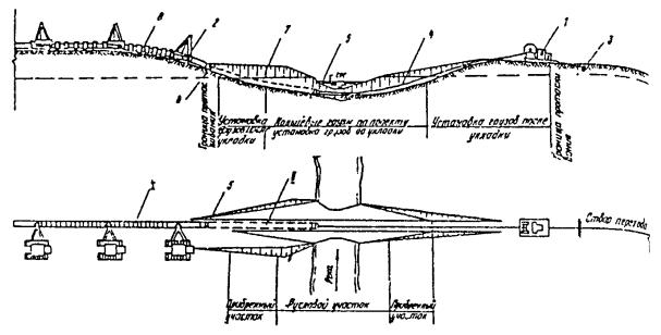 2.8. При необходимости строительства подводных переходов в летнее время через реки с широкими залитыми или сильно заболоченными поймами монтажную площадку рекомендуется сооружать методом намыва средствами гидромеханизации.