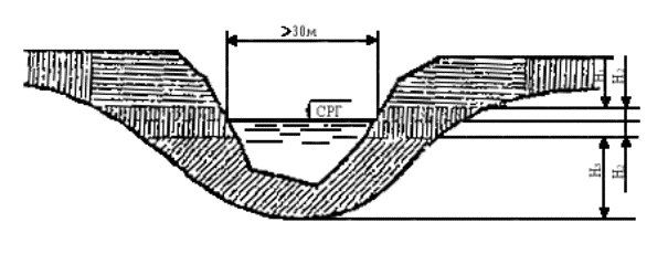 с остановкой во время протаскивания более суток и грунте дна водной преграды (галечник, гравий, скала); |