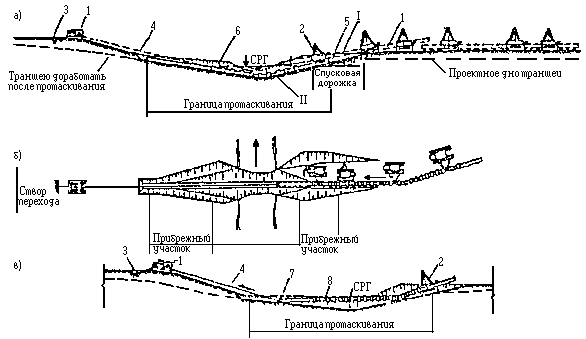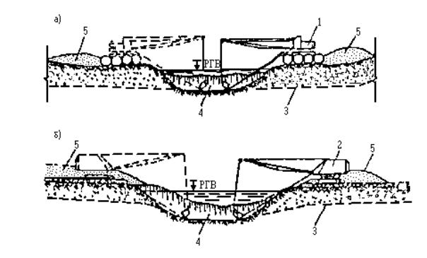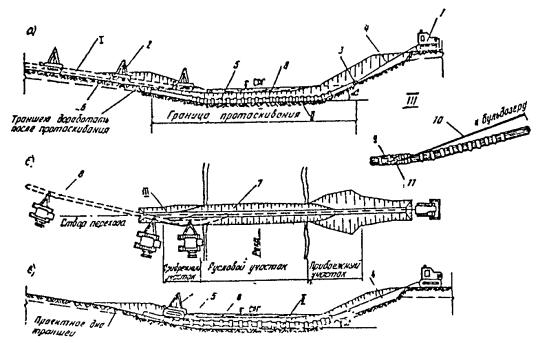 схемы разработки подводных и береговых траншей (с распределением отвалов грунта), а также способы укладки подводного трубопровода;