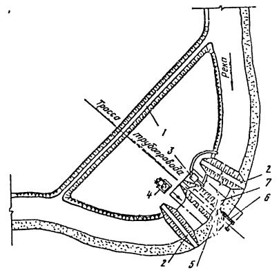 план строительно-монтажной площадки с указанием участка отвода земли заказчиком для размещения временных сооружений и отвалов грунта. Территория монтажной площадки должна быть достаточная для размещения сварочных стапелей, спусковых устройств и других сооружений, необходимых для производства работ, связанных со строительством подводного перехода;