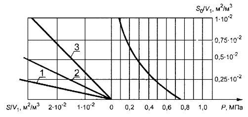 Отношение общей поверхности сетки S к свободному объему оболочки V, см3 /см3, не менее |
