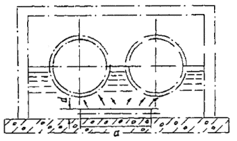 Примечание. Опасное действие постоянного и переменного блуждающих токов (при наличии воды в канале или грунта, которые достигают изоляционной конструкции) увеличивает скорость коррозии наружной поверхности трубопроводов, контактирующей с водой или грунтом в канале.