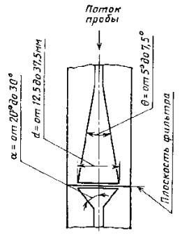 2.2.5. Фильтродержатель должен быть изготовлен из коррозионно-стойкого материала. Геометрия внутреннего канала фильтродержателя представлена на черт. 2. Фильтродержатель выполняют обогреваемым (с подогревом стенок до температуры не ниже 60 °С).