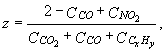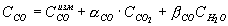 Если при этом на показания анализатора СО оказывают влияние другие компоненты, как указано в п. 2.7, то полное уравнение для определения доли СО принимает вид: