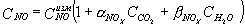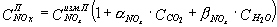 Если в приведенных выше формулах при измерении объемных долей СО и (или) NOx и NO требуется ввести поправки на влияние СО2 и Н2O в пробе, то это проводят при помощи следующих формул: