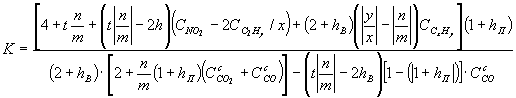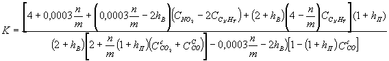 Если СO2 и СО определены в сухой пробе, то К вычисляют из следующего соотношения