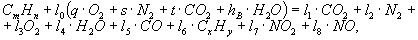 2.1. Предполагается, что баланс между первоначальным состоянием топливовоздушной смеси и результирующим состоянием отработавших газов, отбираемых для анализа, может быть выражен уравнением
