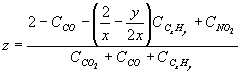 y - число атомов Н в молекуле углеводорода в пробе отработавших газов.