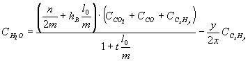 2.6. Для определения остальных неизвестных величин решается следующая система линейных уравнений, из которых уравнения с (1)-(4) выводятся из фундаментальных законов сохранения числа атомов, а уравнения (10)-(14) представляют собой соотношения между объемными долями газообразных компонентов.